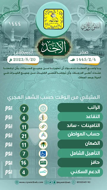 المتبقي على مواعيد الرواتب و الدعم الحكومي للمملكة.. الأحد 4 - 2 - 1445هـ